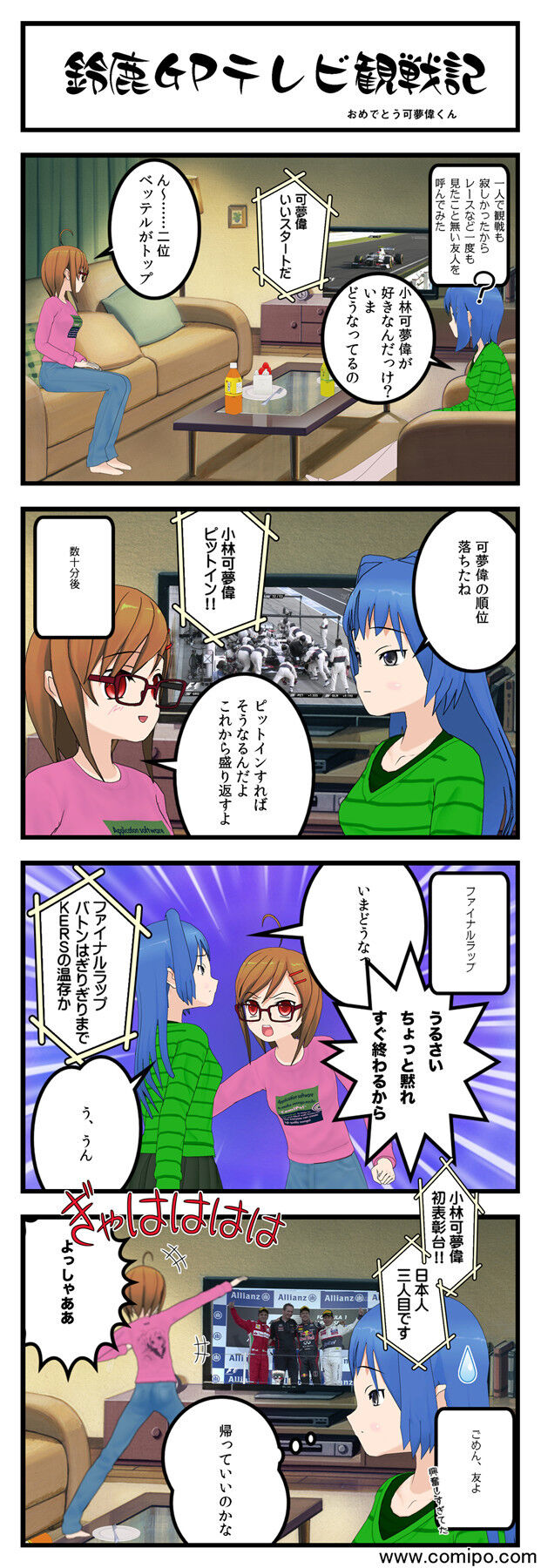 1990年の鈴木亜久里(日本GP)、2004年の佐藤琢磨(アメリカGP)、そして今度の2012年小林可夢偉(日本GP)となるわけですね。