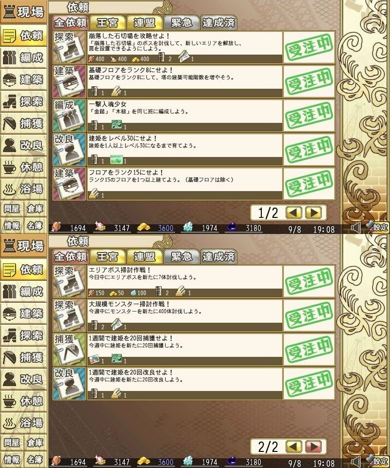ほら、艦これの『任務』に相当する『依頼』のところね。